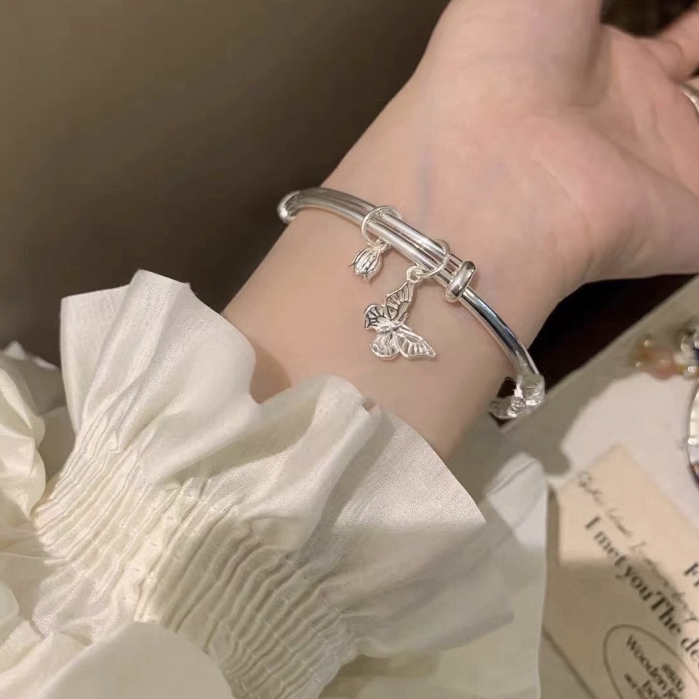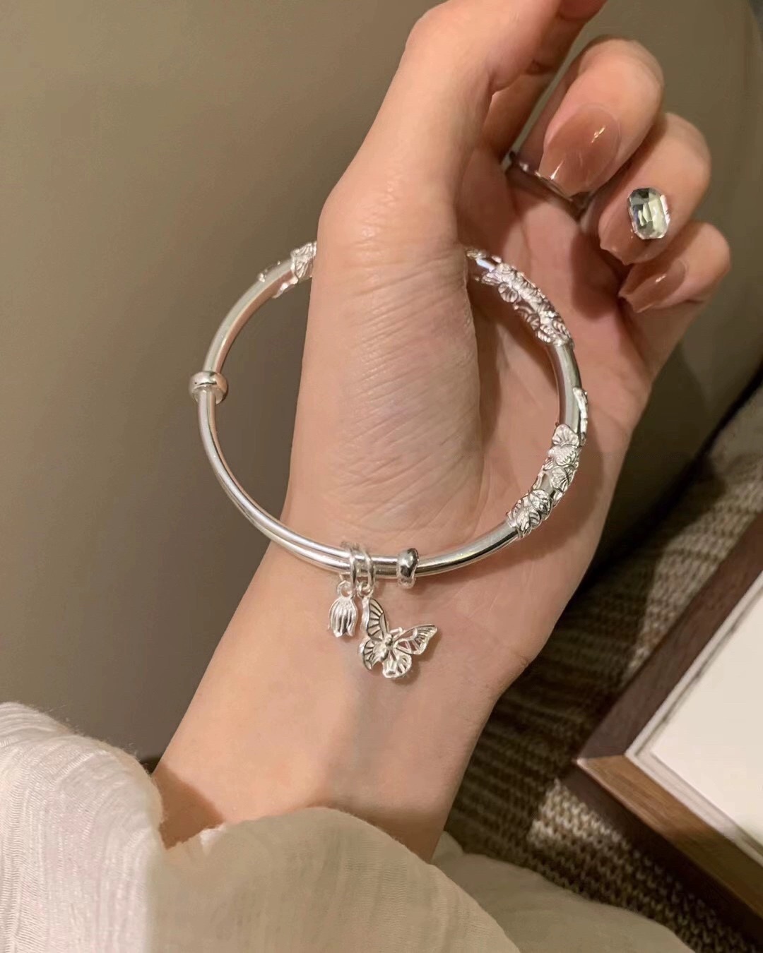 Hong Kong is giving birth to a silver 9999 light extravagant and luxurious Temperament Pure Silver Bracelet Wrap Around Flowers Silk Butterfly Bracelet Girls' Day Ornaments-Taobao