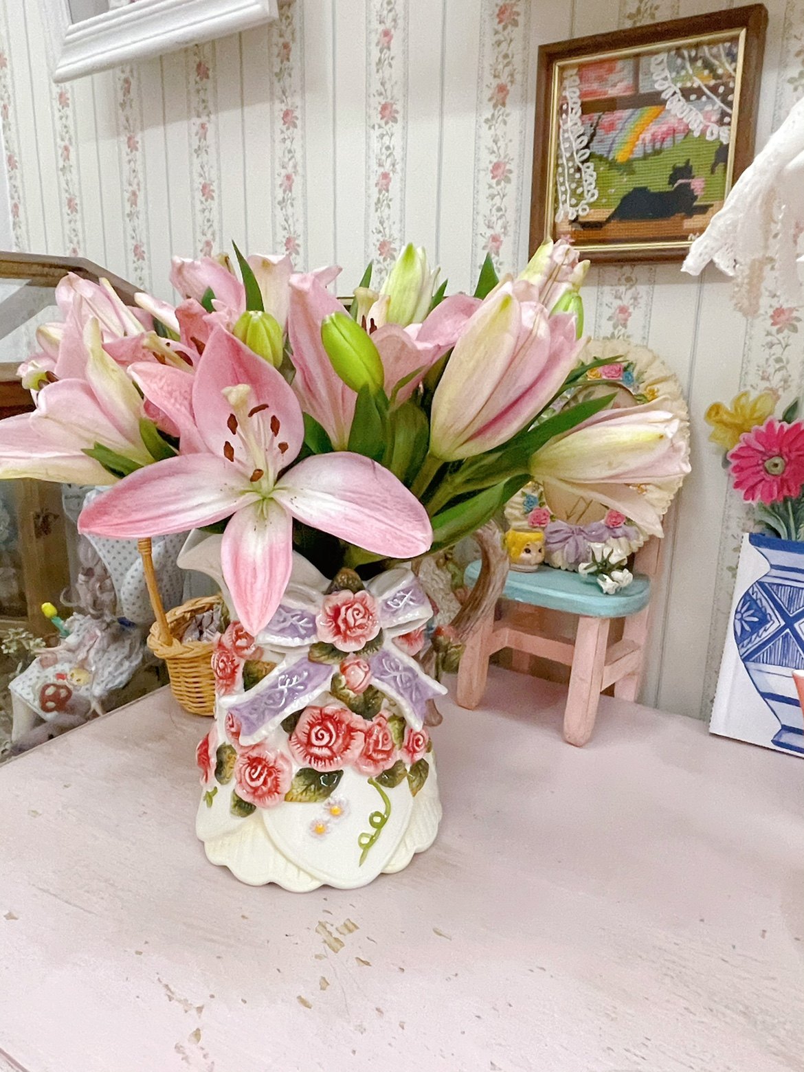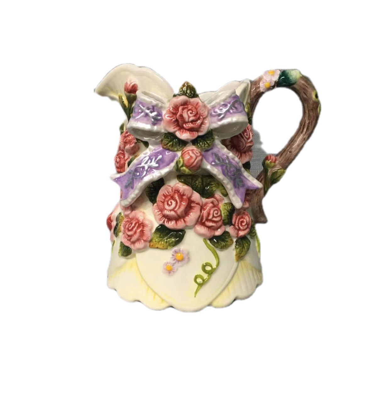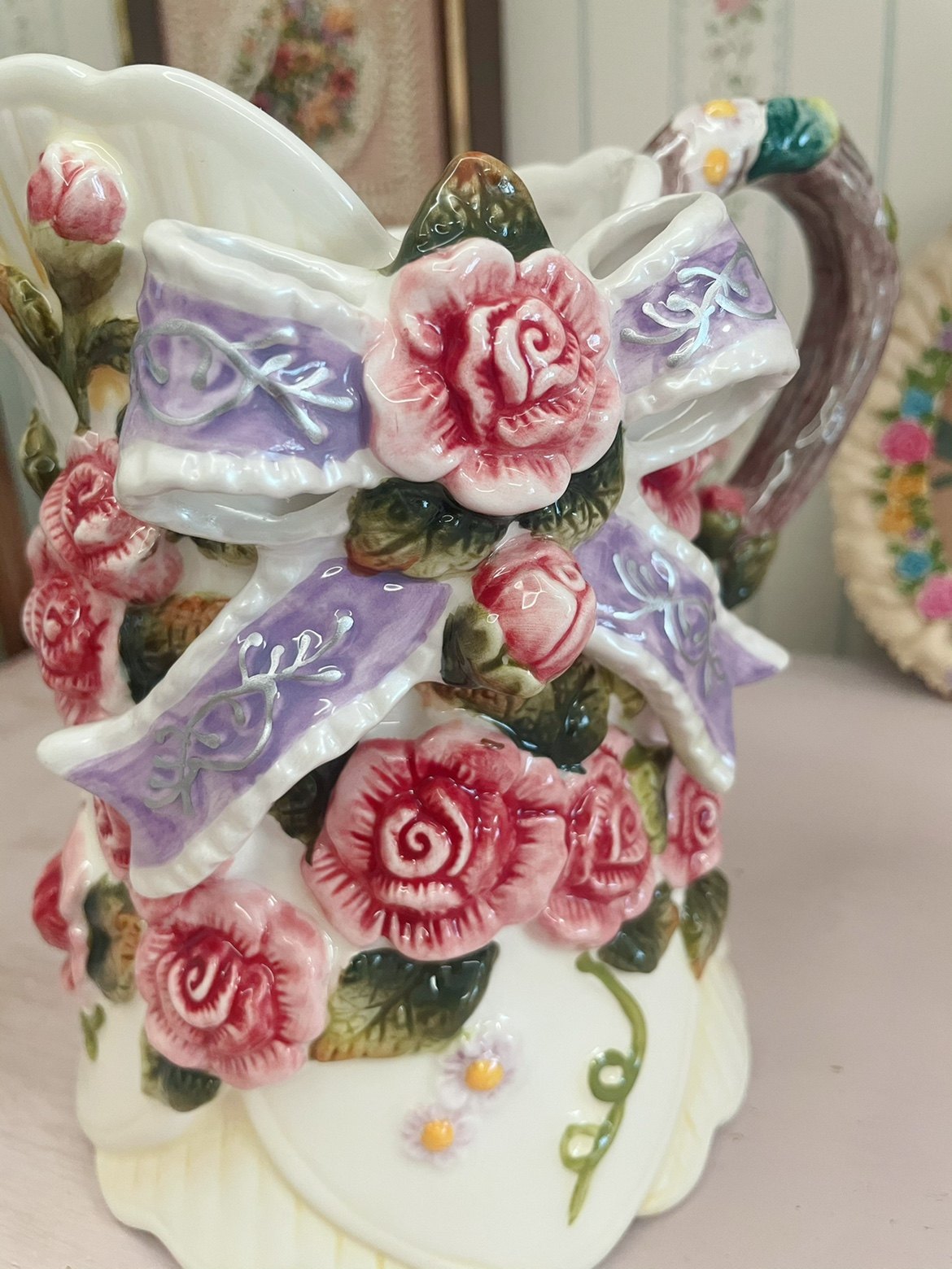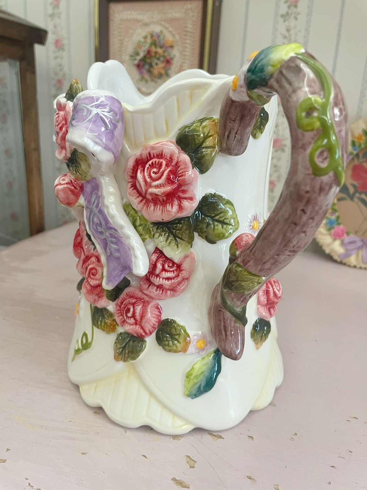 Pan-pan vintage | vintage | retro-flour-colored rose colored rose silk with ceramic vase water drying kettle-Taobao