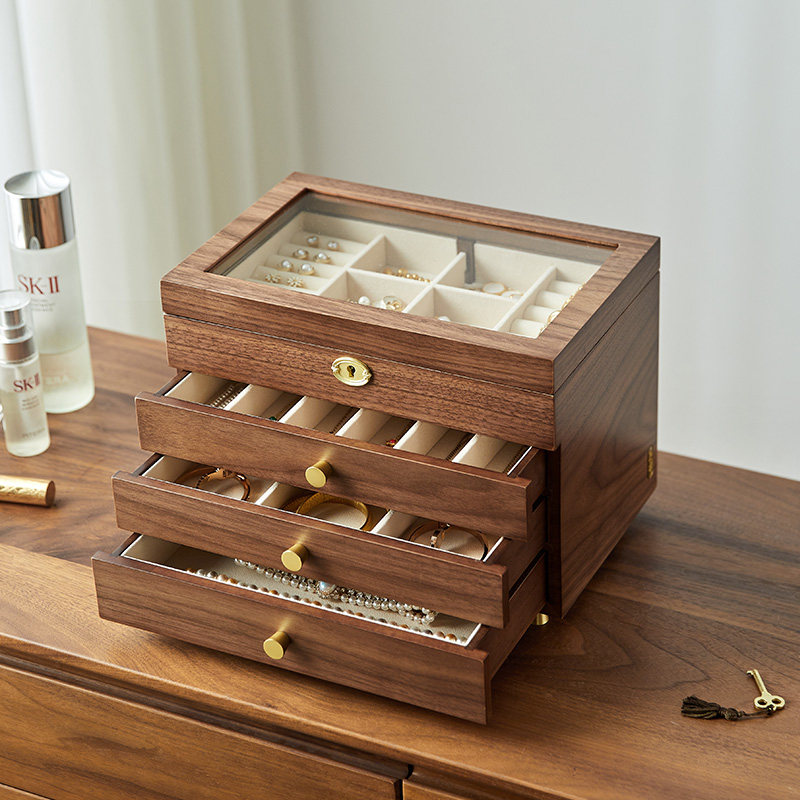 Capacity Upgrades Four Floors Walnuts Wood Color Solid Wood Full Lock Four Floors Walnuts Wood Color Solid Wood Full Lock Glass Lid Four Layers Of Walnuts Wood Color (to Enjoy) North American Black Walnuts Solid Wood Full Lock