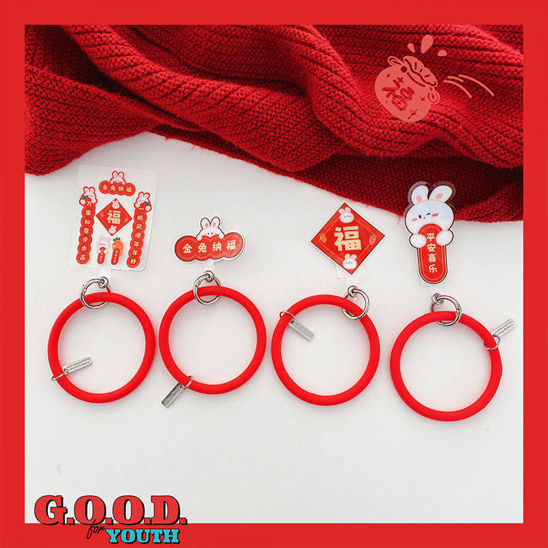 Year of the Rabbit Anti-lost Bracelet New Year's Festive Round Silicone Bracelet Multifunctional Creative Mobile Phone Case Accessories Decoration Ornaments