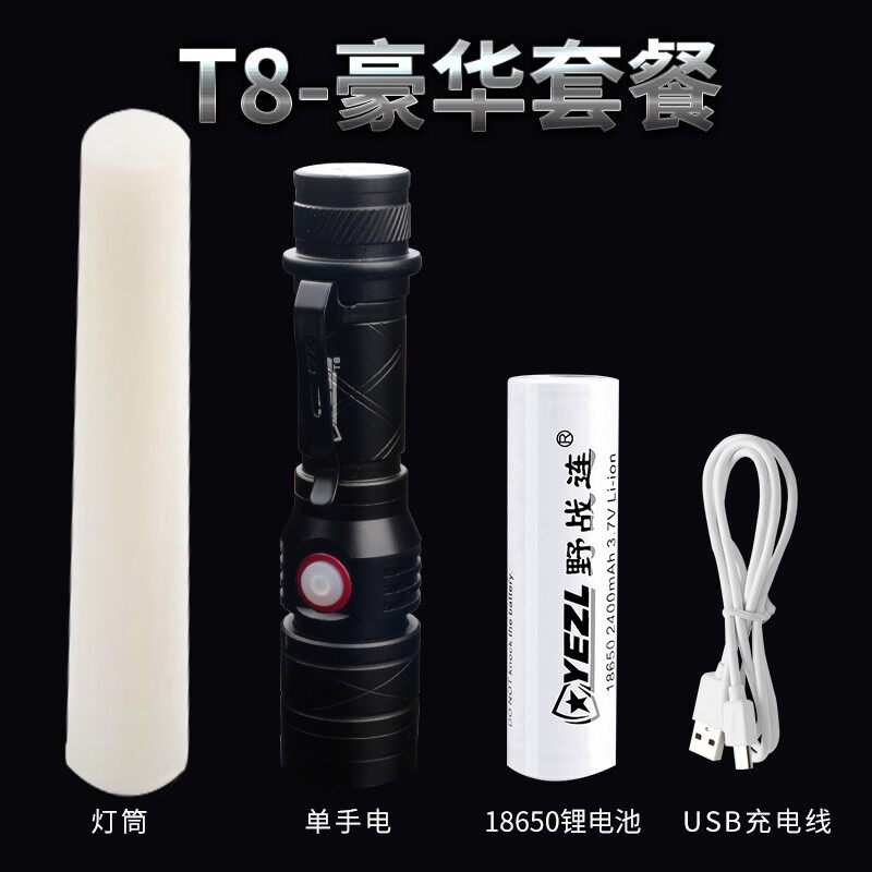 Intense Light Hand Electric T6 Lamp Pearl Far Shot Outdoor Camping LED Riding High Brightness Magnet Tail Red Blue Baton T8-Taobao