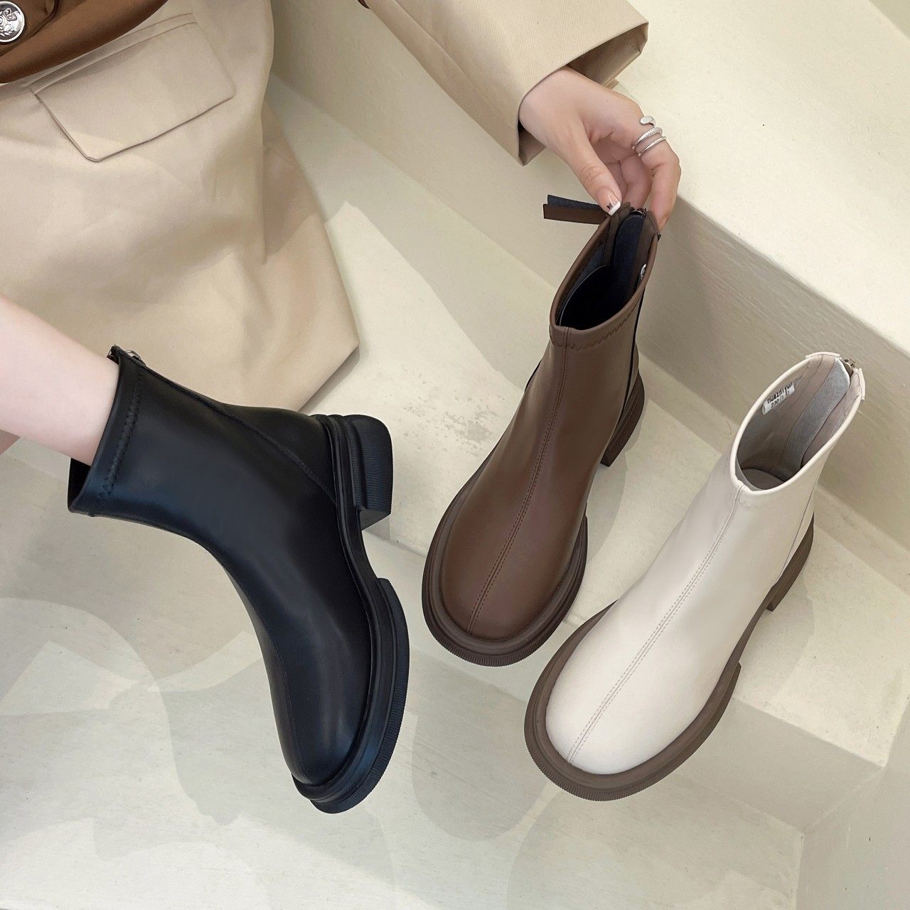 2023 new short boots Women fall winter plus suede slim boot thick bottom small sub with Martin boots woman Chelsea naked boots-Taobao