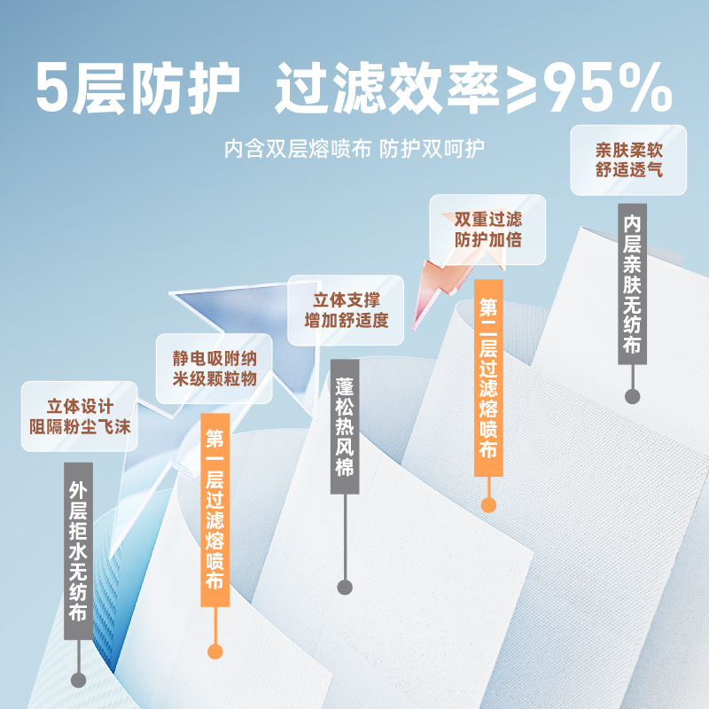 50 pieces of De Yu KN95 mask five layers of disposable mask for men and women official stereo thickness