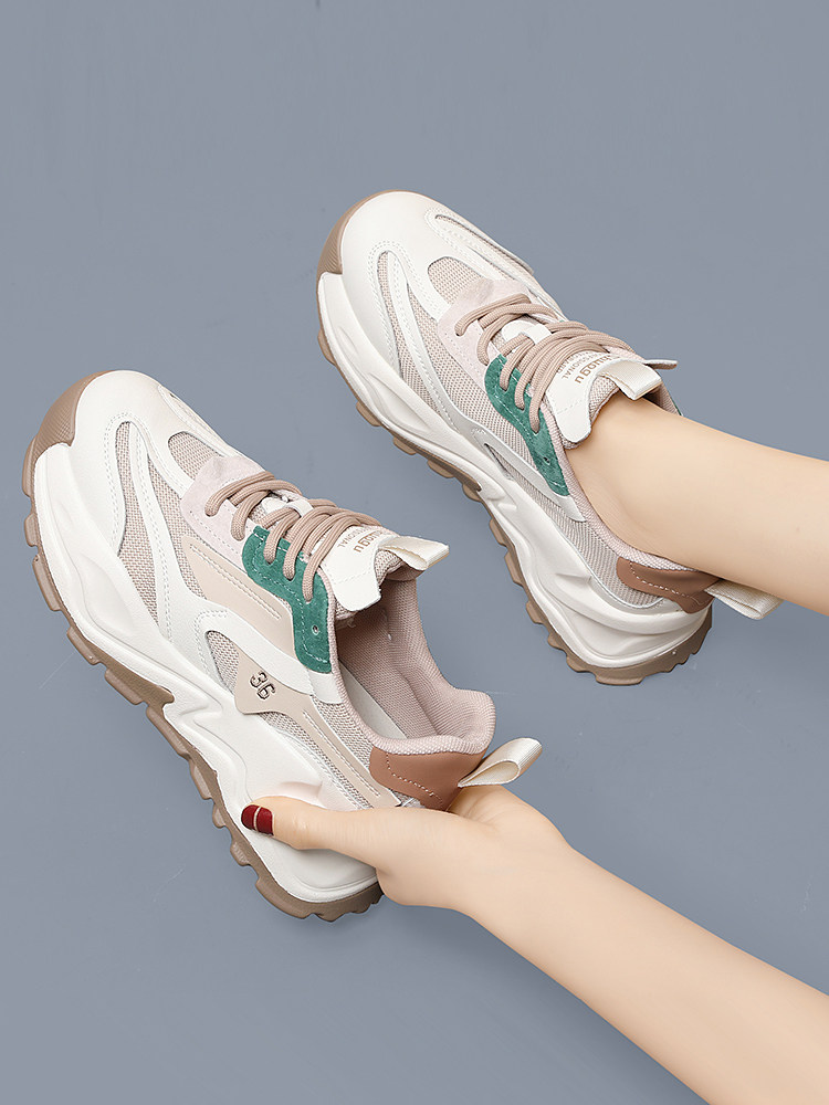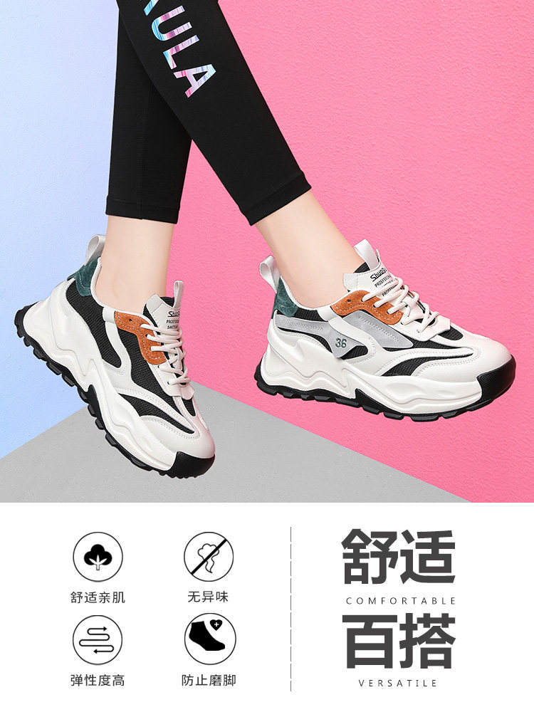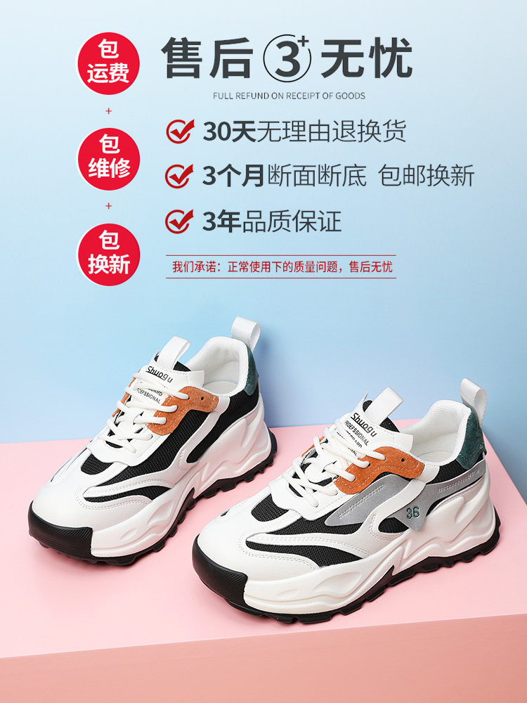 Leather pine leisure sneakers and lightweight soft sole tourism increase thick sole daddy 2022 new spring and autumn
