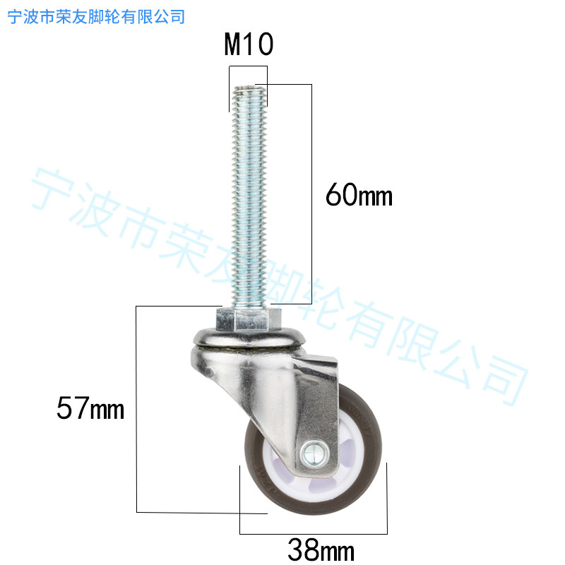 Glass machinery caster chrome plated stent 1 5 inch lengthening screw M10x60 artificial glue TPE universal wheel