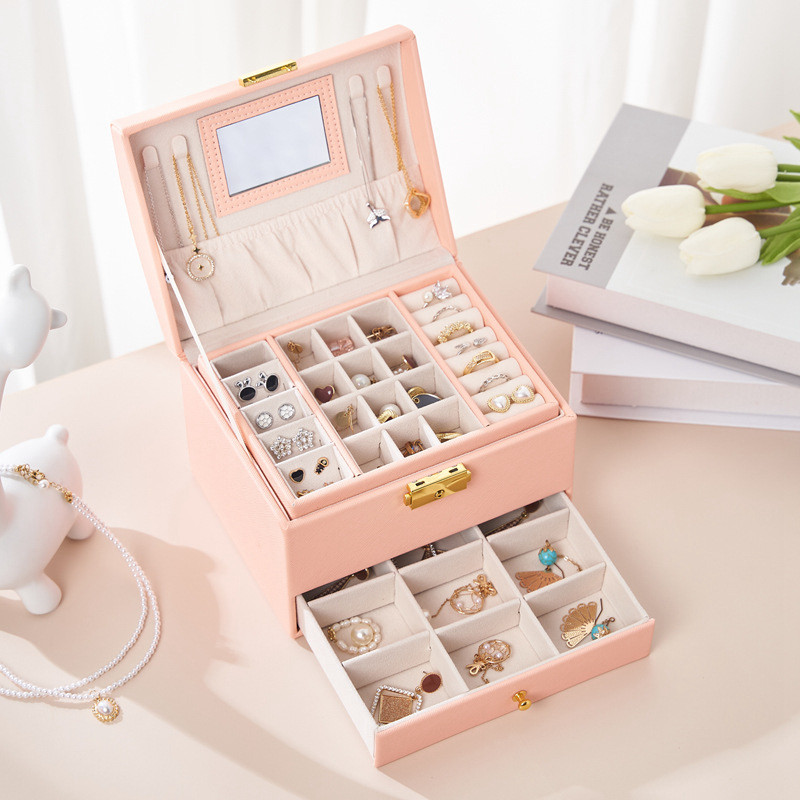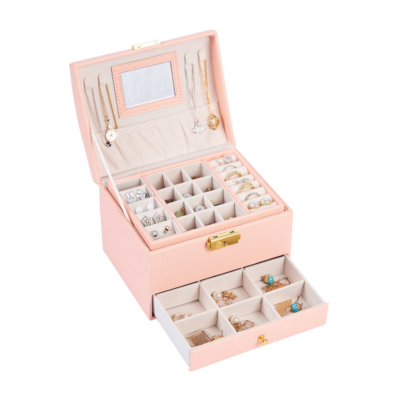 New three-layer Balcony Case (white) mirror new three-layer Balcony Case (pink) mirror new three-layer Balcony Case (ink green) mirror new three-layer Balcony box (white) necklace