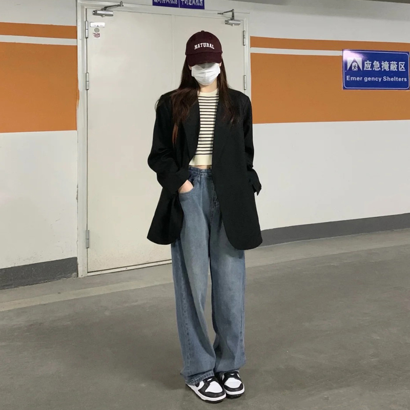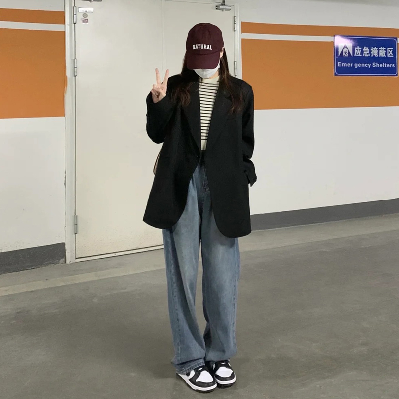 WFYO senior black suit coat woman 2023 Spring and Autumn new Han edition new chic loose suit tide