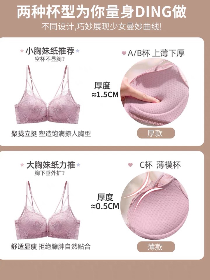 32 70AB pass cup upper thin lower thickness 34 75AB pass cup upper thin lower thickness 36 80AB through cup upper thin lower thickness 38 85AB pass lower thickness 36 80C thin cup