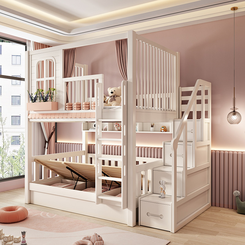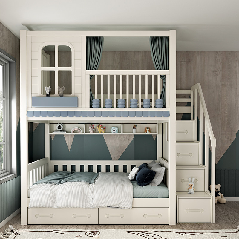 Solid wood upper and lower bunk beds High guardrails primary and secondary beds Children high and low beds Small family type Double beds Two floors up and down bed-Taobao
