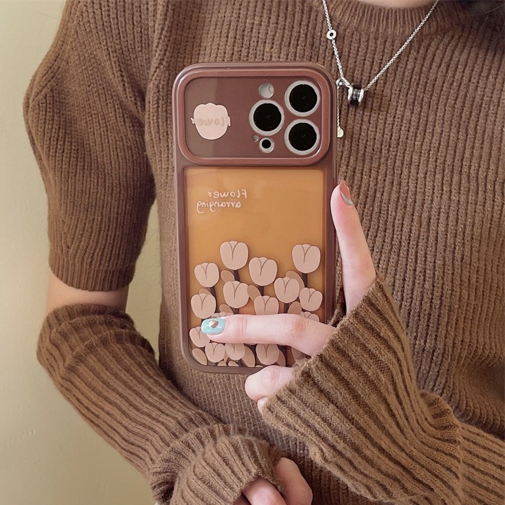 Korean wind tulips apply iphone15pro Apple 14promax mobile phone shell 15 new 13 12 anti-fall-Taobao
