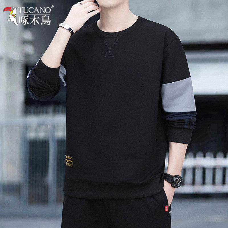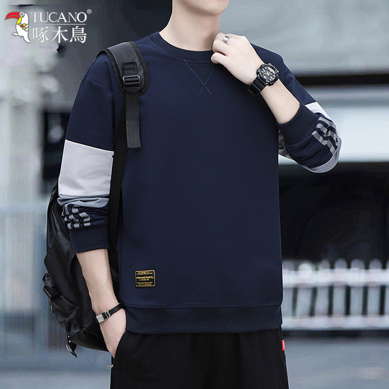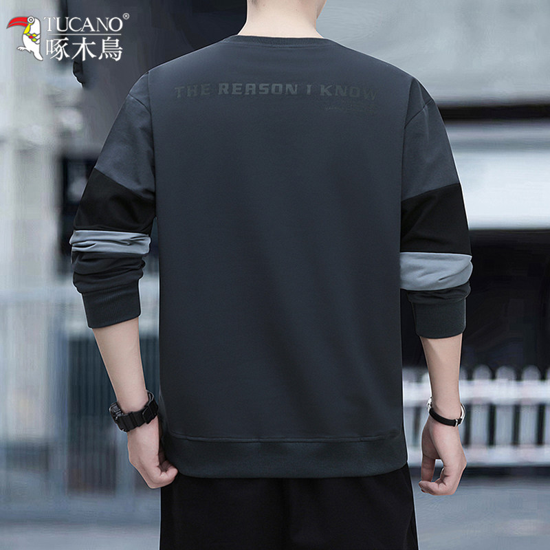Woodpecker men's sweater plus velvet thickened casual long-sleeved t-shirt 2023 autumn and winter new men's tops
