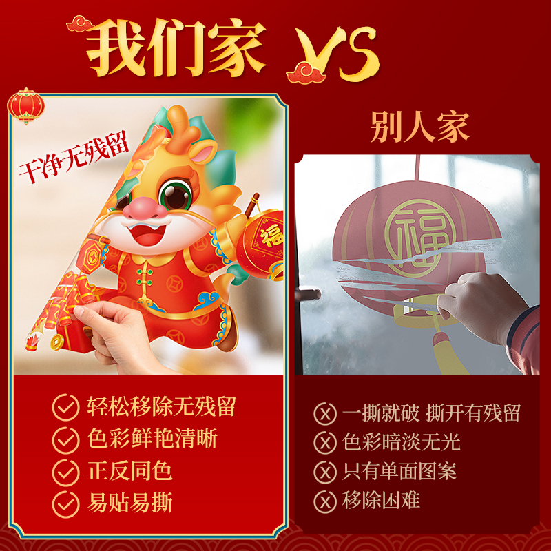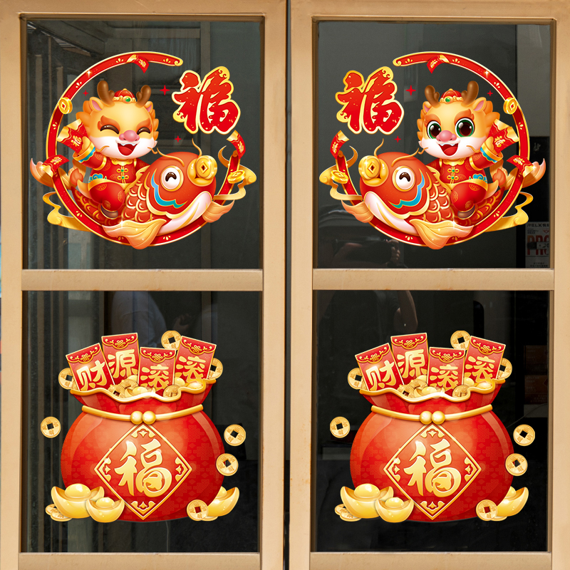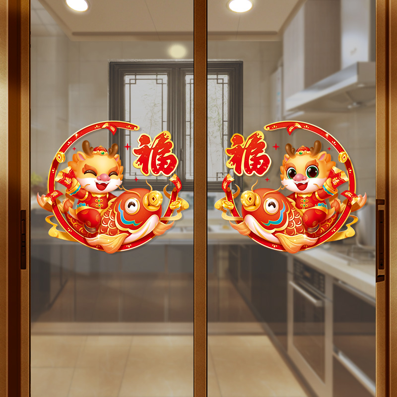 Dragon Year Window Flowers 2024 New Year decorations Forwords Spring Festival electrostatic glass doors and windows stickers for Spring Festival couplets-Taobao