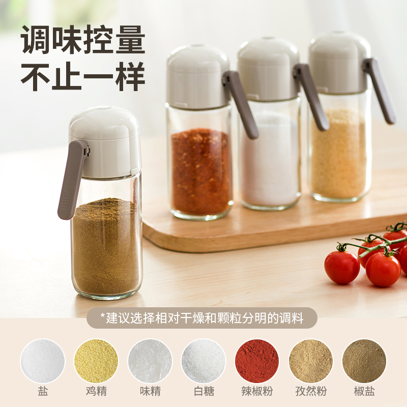 Many seasonings such as chicken essence white sugar salt can be used with 180ml single loading (quantitative homogenous sprinkling of salt) 180ml two (quantitative uniform sprinkling of salt) 180ml three clothes (