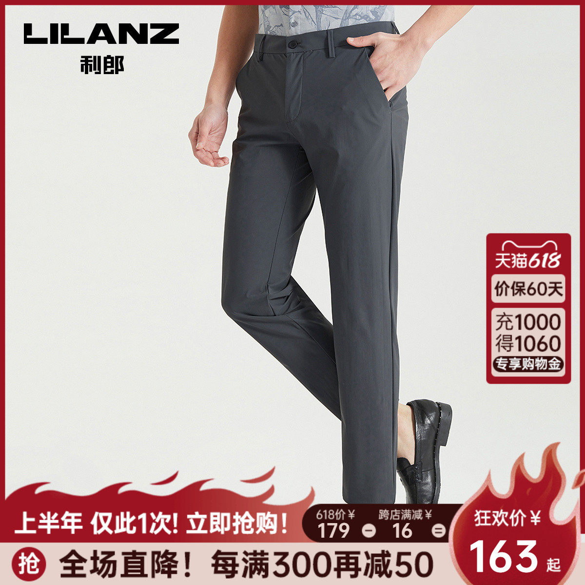 (Four sides) Lilang official casual pants men's slim black men's pants 2023 summer thin pants men