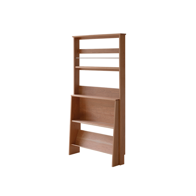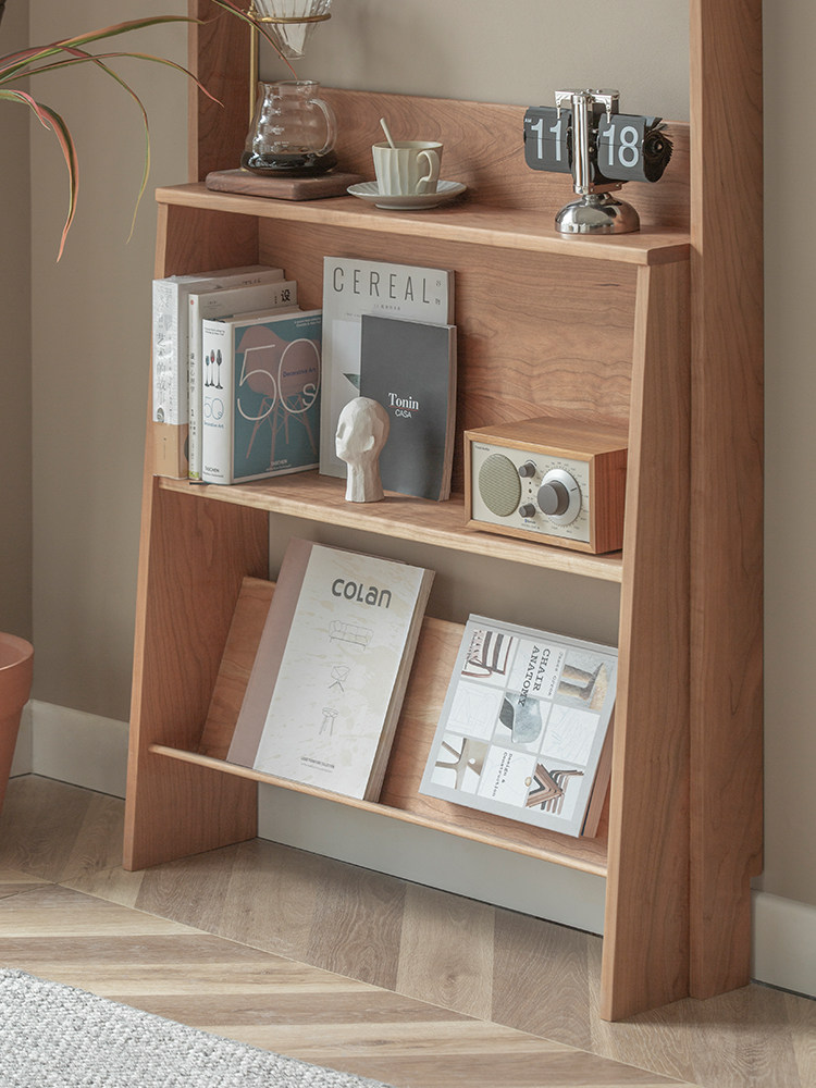 Japanese-style light luxury display frame creative wood bookshelf landing against wall display shelf stainless steel tea meal cabinet