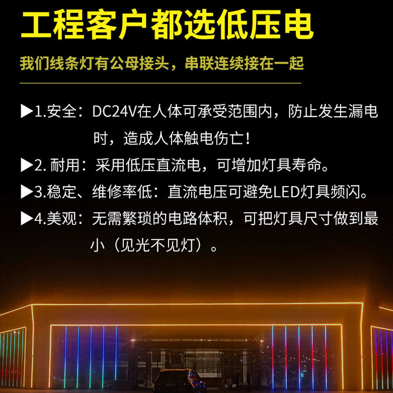 Led line light outdoor waterproof 24V full color external wall brightening engineering light profile light Lantern Guard Rail Tube Monochrome-Taobao
