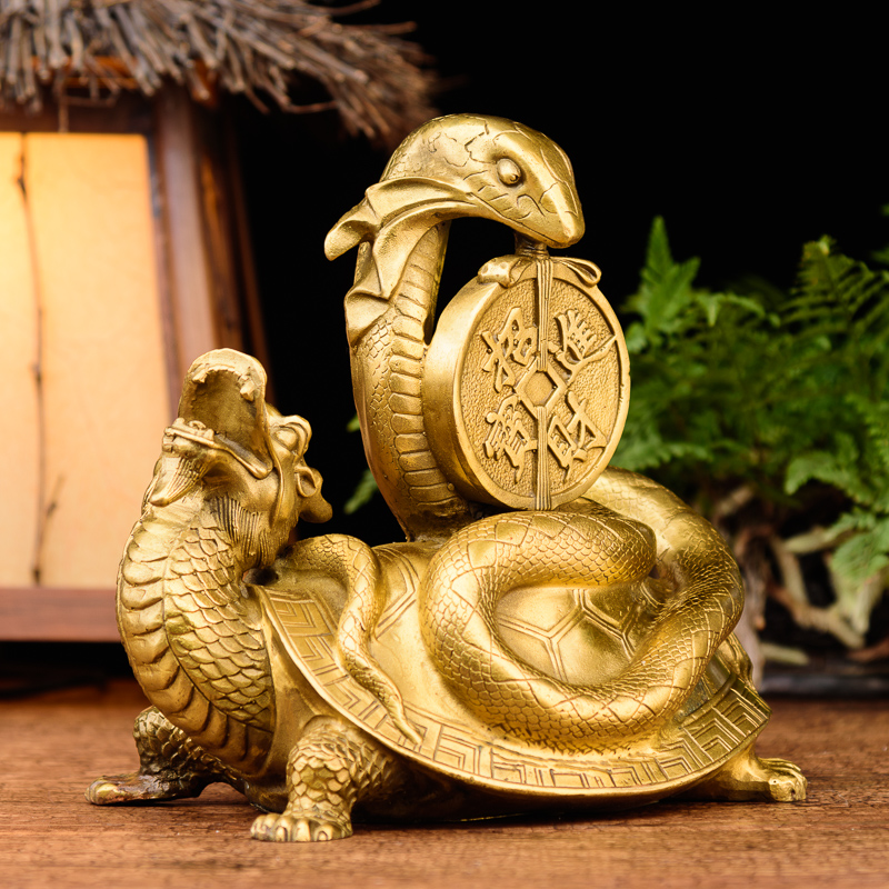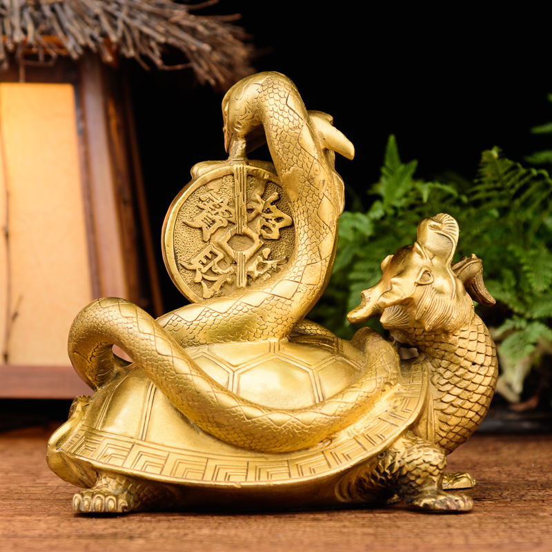 Bainayuan Xuanwu Ornament Brass Turtle Snake Ornament Dragon Turtle Quartet God Beast Craft Gift Ornament Office Desktop Ornament