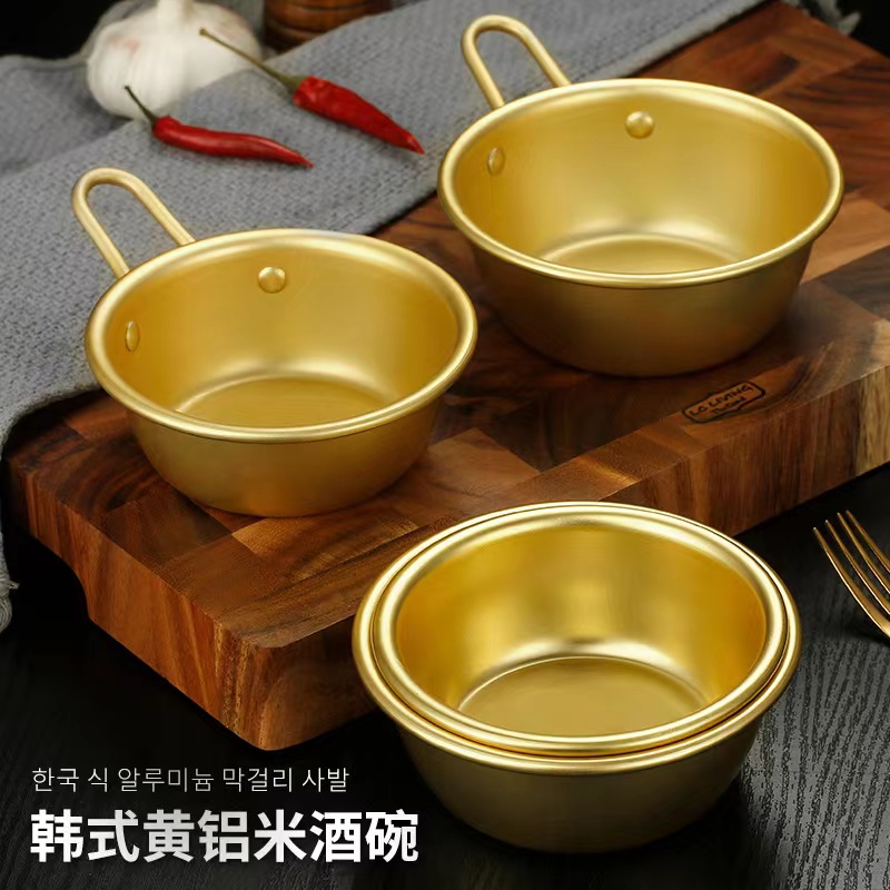 Korean rice bowl Korean cuisine shop special yellow bowl hot wine bowl with handle yellow aluminum bowl Korean drama