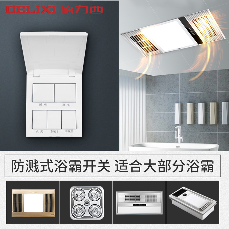 Bath switch panel Five open household general bathroom waterproof five-in-one toilet wind-warming four switches