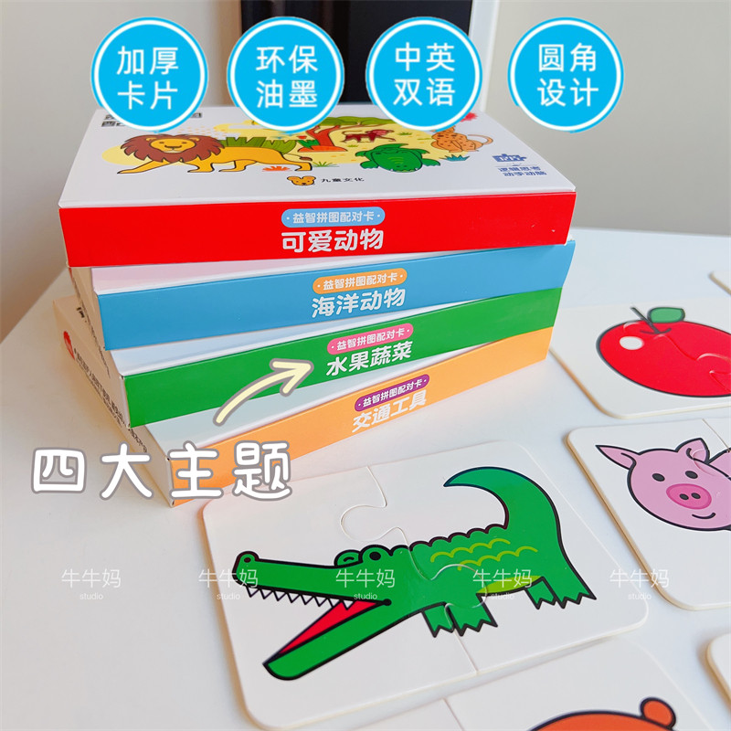 Puzzle card A set of 4 books puzzle card Animal puzzle card transport puzzle card vegetable fruit puzzle card marine animal