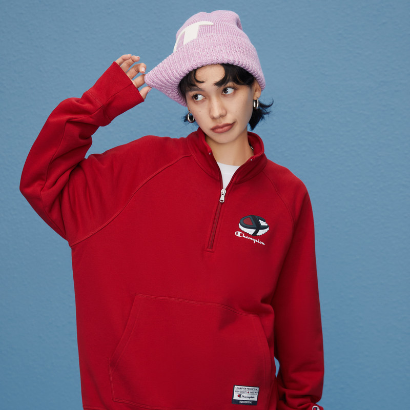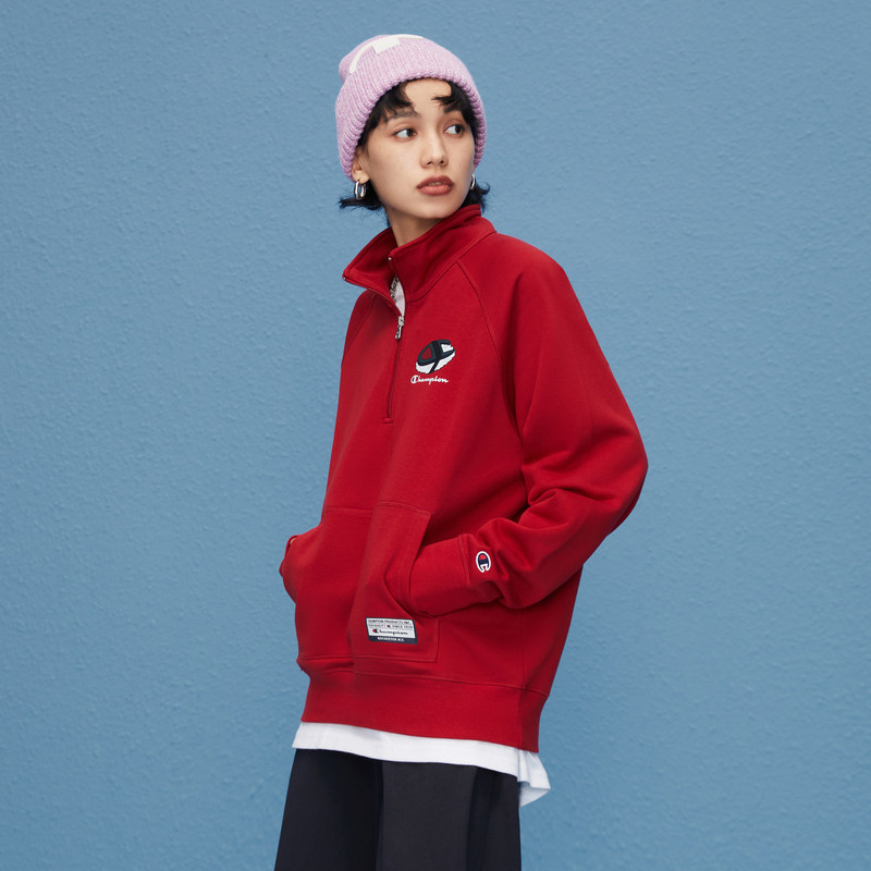 Champion Champion Lovers Acrosico American Half Zipper Flap Collar Jacket 2023 Autumn Winter Tide Card Big Printed Blouse-Taobao