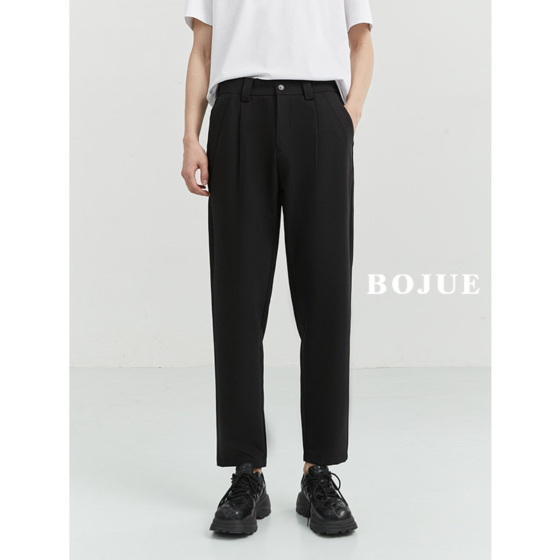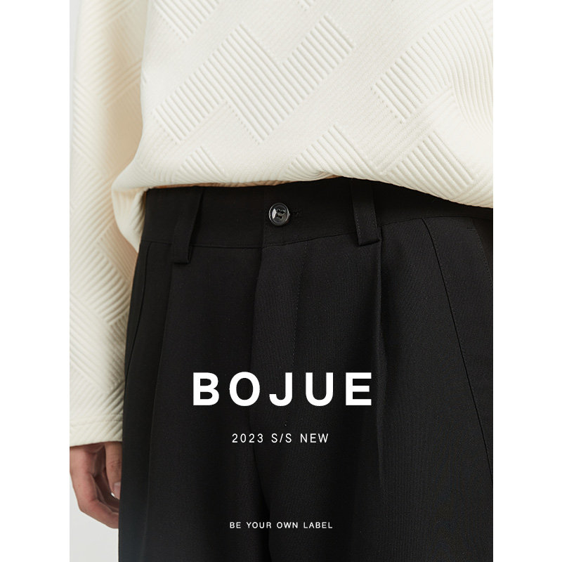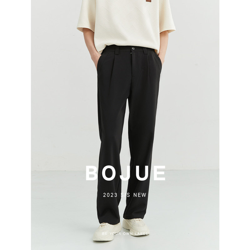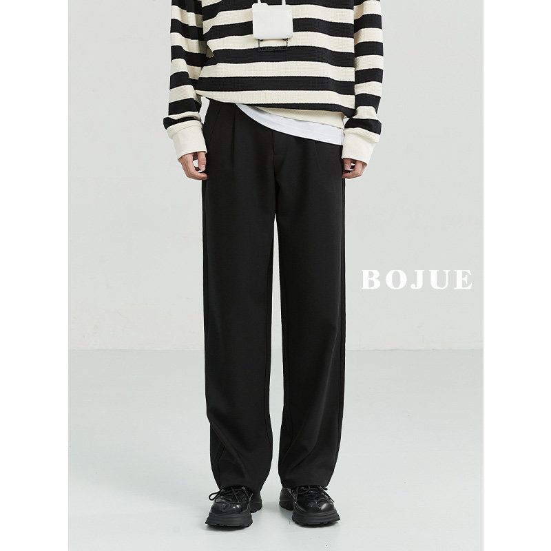 High-quality loose-fitting straight casual pants men's 23 spring and autumn Korean style drape wide-leg suit black long pants