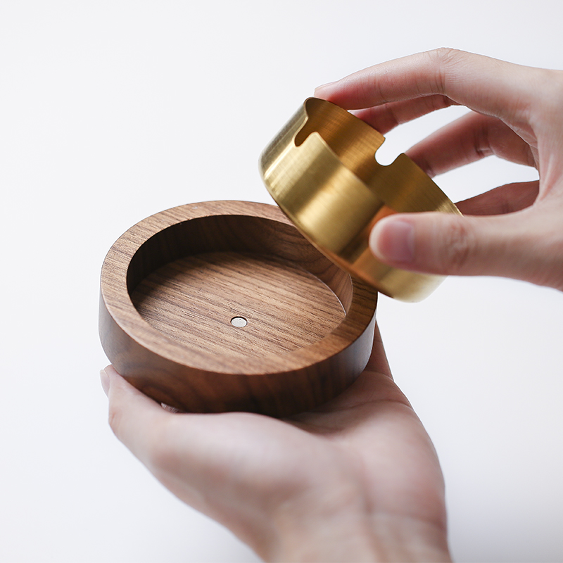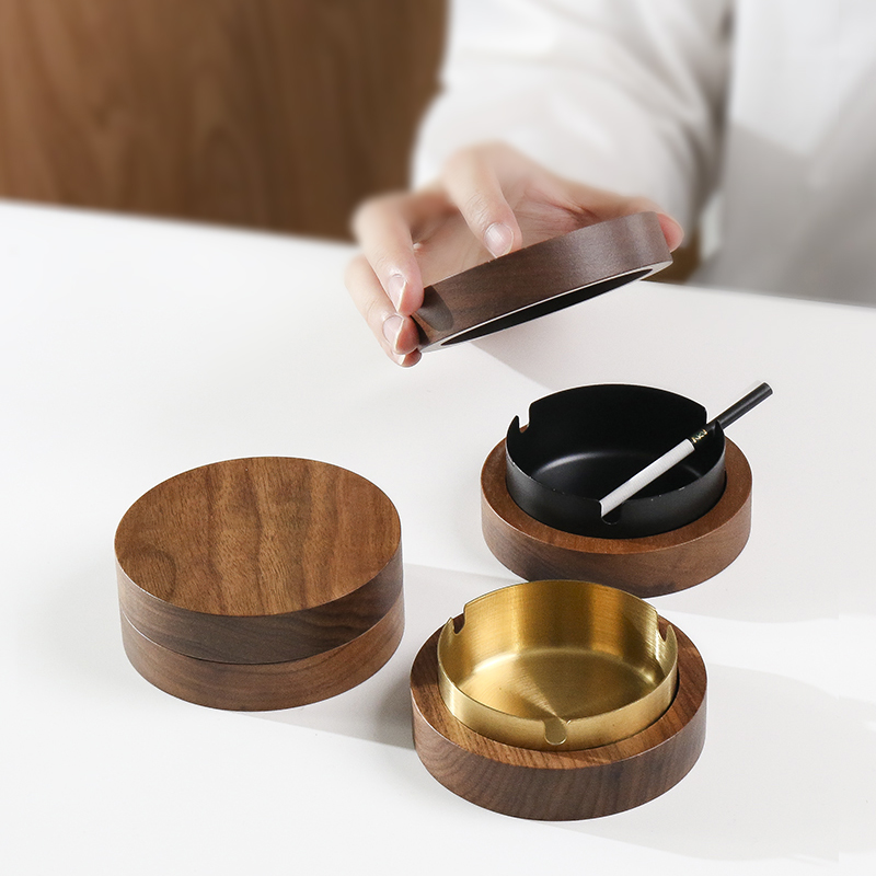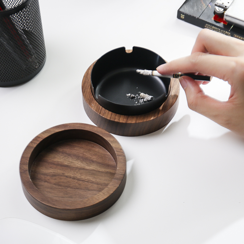 Black Walnut Wood Ashtrays Creativity Personality Covered Fly Ash Home Office Solid Wood Quality Nordic Light Lavish Living Room-Taobao
