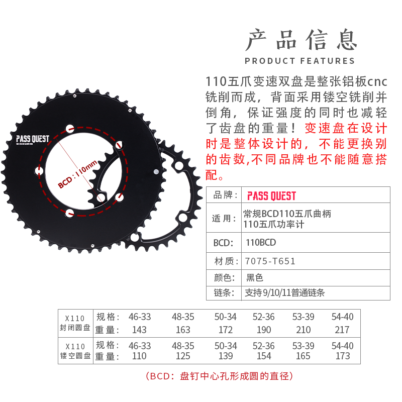 PASS QUEST 110bcd Five-claw crank power meter variable-speed double disc dental disc road car apex Rotor