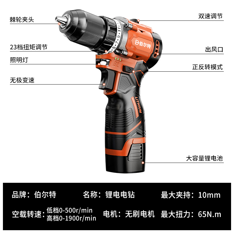 Burt Brushless Small Steel Cannon Hand Drill Lithium Battery Electric Drill Pistol Drill Home Electric Drill Charging Transfer Electric Screwdriver-Taobao