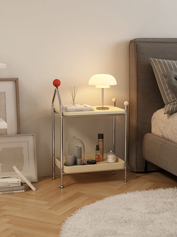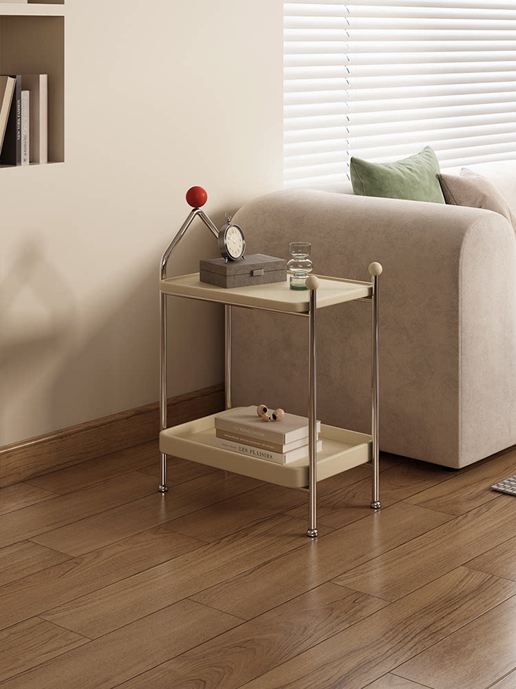 Simple side several creative coffee table double stainless steel shelf bedroom square bedside cabinet with living room corner