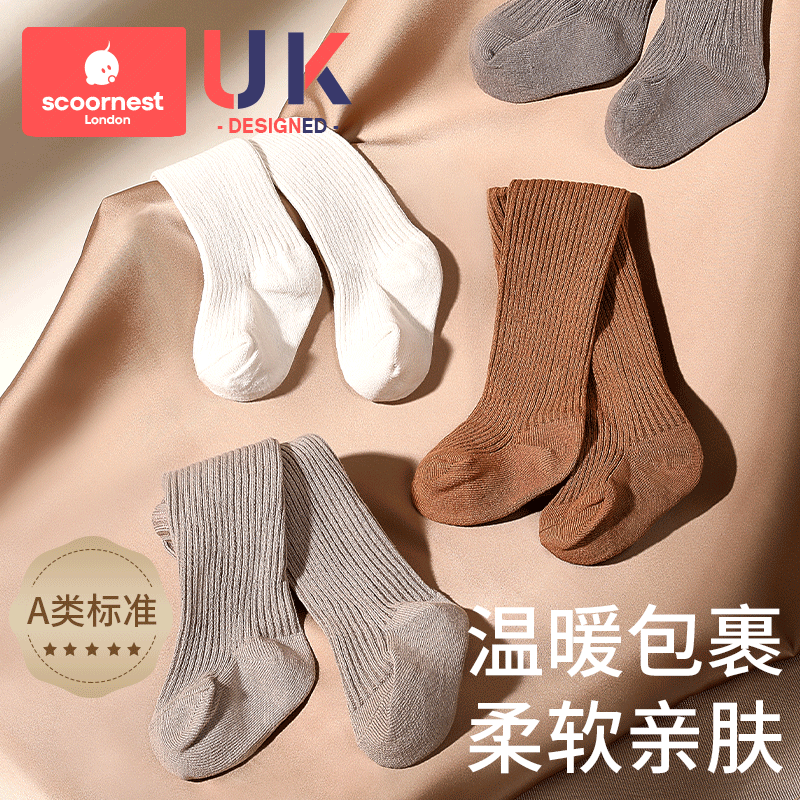 Cole Girl Beats Bottom Pants Baby Even Pants Socks Child Pants Socks Baby Autumn Winter Pure Cotton Thick Undersock Girl-Taobao
