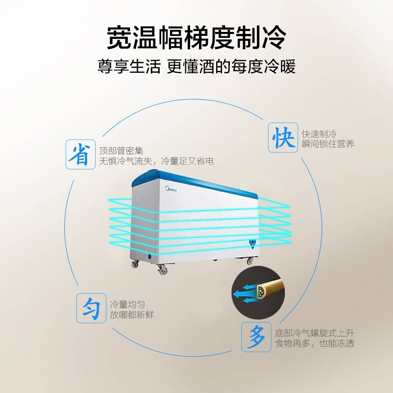 Midea Midea Horizontal 336 liter commercial arc ice cream cabinet refrigerated single - temperature refrigerator glass door