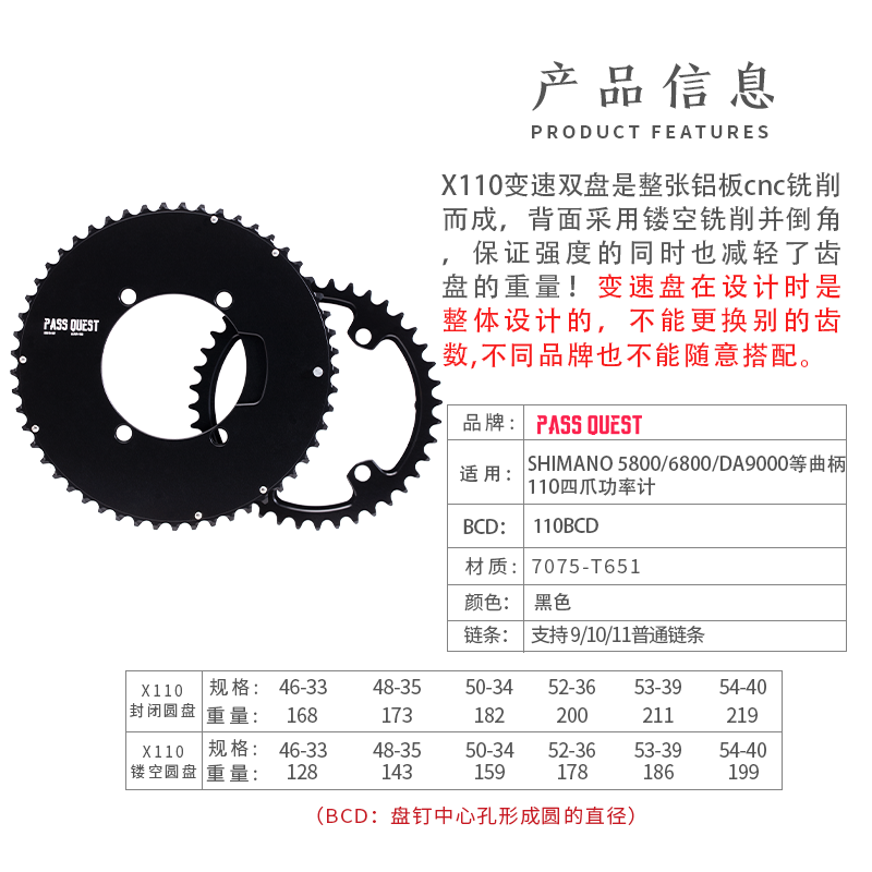 110BCD-46T-33T 110BCD-46T-33T hollowed-out 110BCD-48T-35T hollowed-out 110BCD-50T-34T hollowed-out 110BCD-52