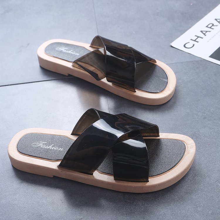 2022 new crystal slippers flat bottom slippers cross with slippers jelly color stylish sandal sandals