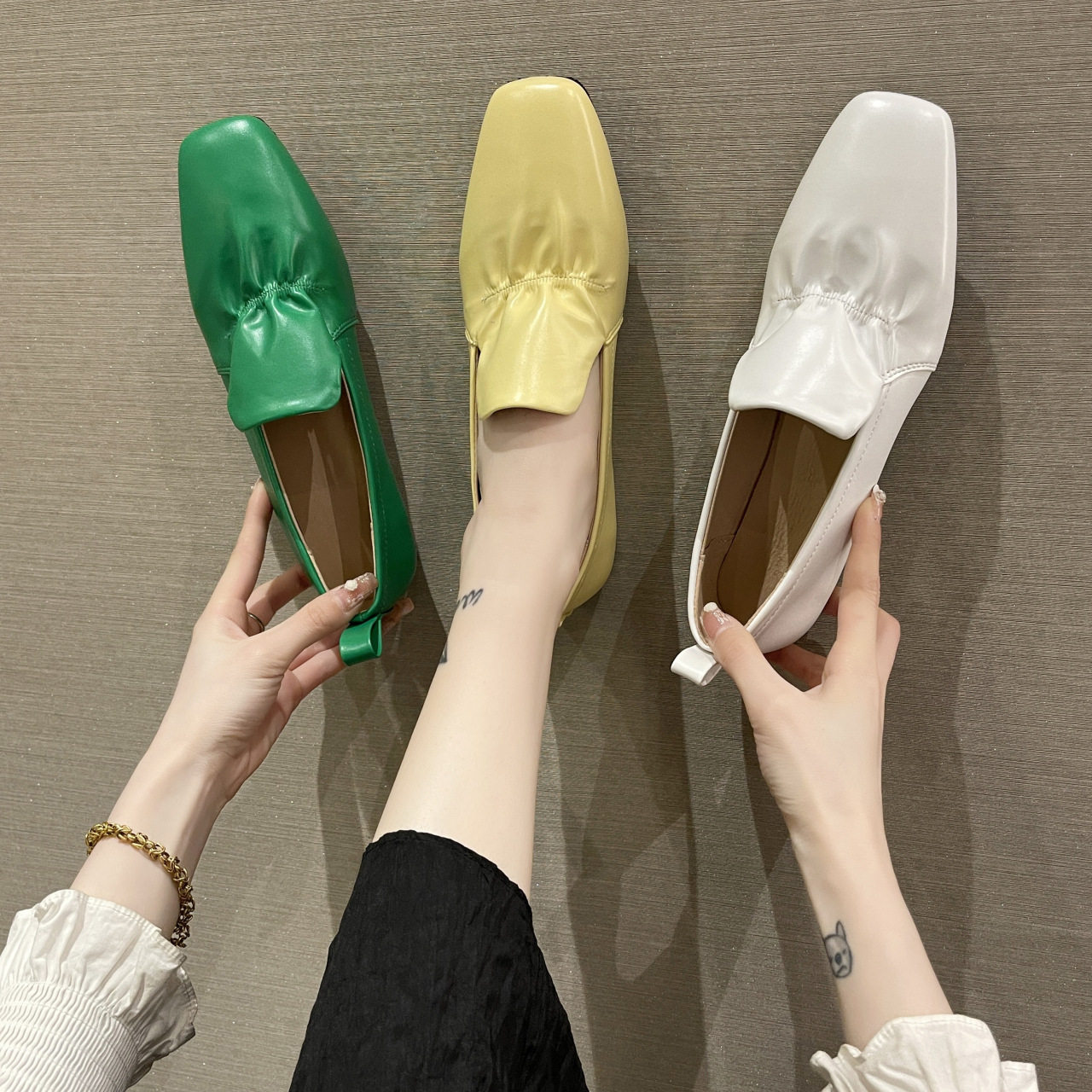 Comfort Pleated Soft Bottom Grandma Shoes Girl Soft Leather 2022 Spring New Good Hitch Pregnant Woman Shoes Sloth Low Heel Single Shoes