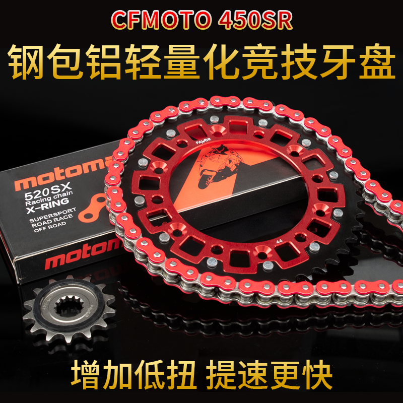 This product is spring wind 450SR double rocker tooth disc 14-41T original car teeth number 14-44T Low torsion version 14-41 44T Pavo 520 Colour oil seal chain 14