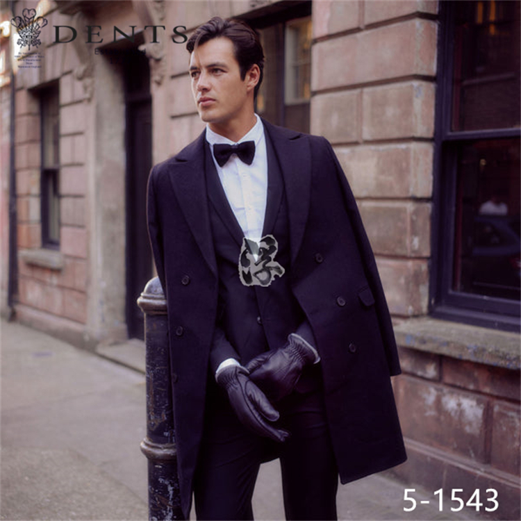 British DENTS men's deer leather cashmere lining elastic wrist handmade external stitching warm leather finger gloves