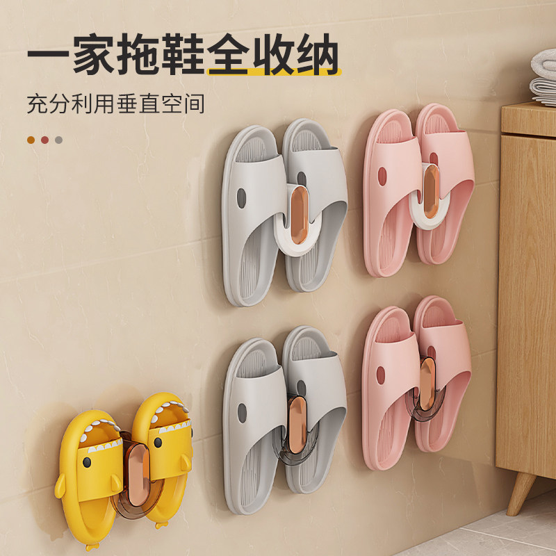 Bathroom slippers rack wall-mounted free-to-punch toilet wall hanging shoes Toilet Drain hook-Taobao