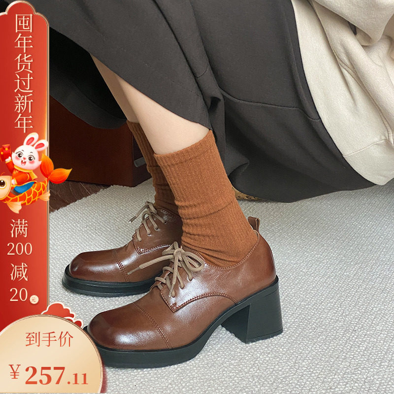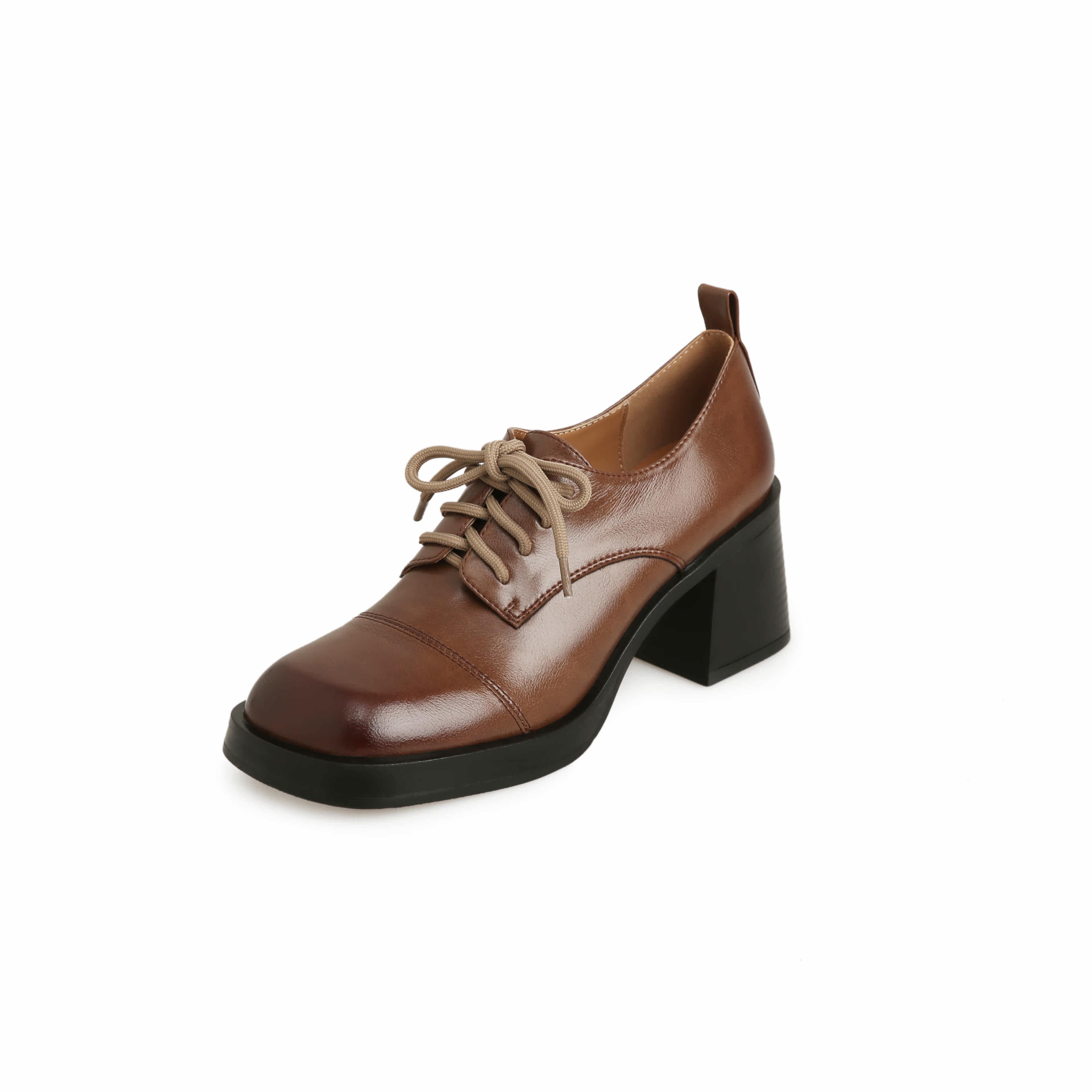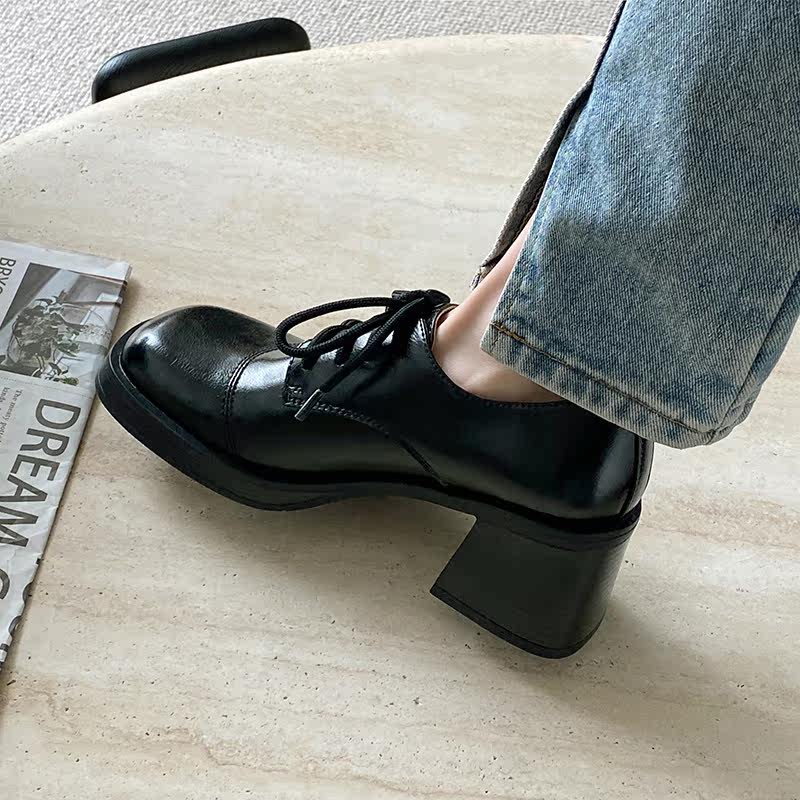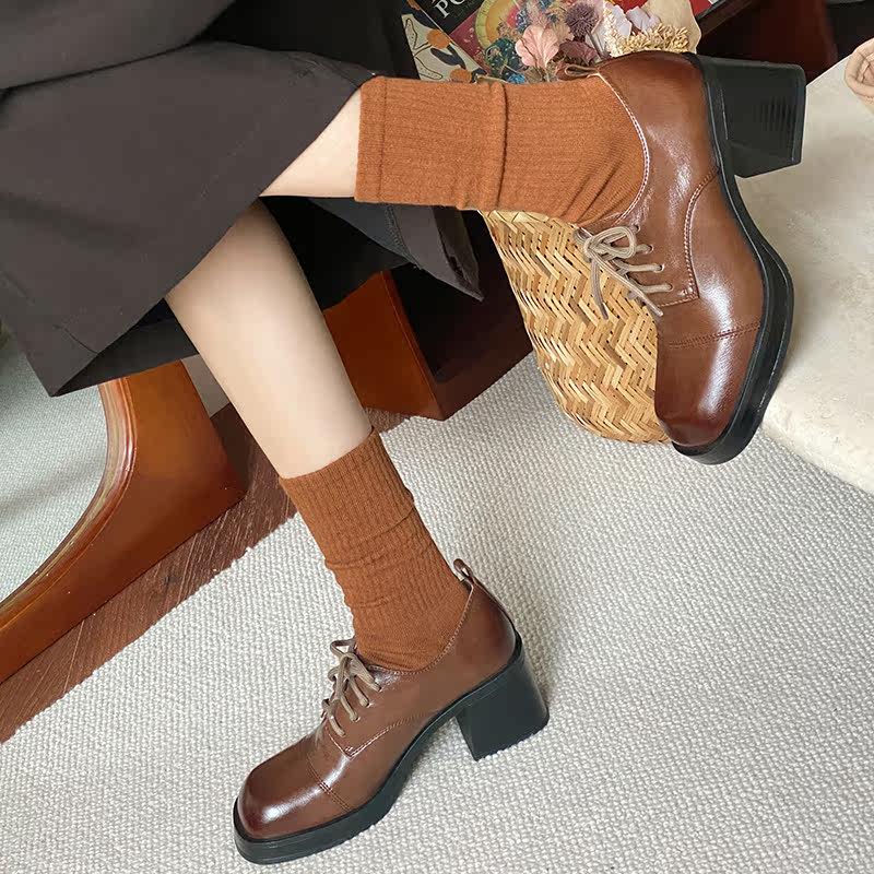 Daily Family ~ Commuter retro - style coarse heel tied small leather shoes and heel increased single shoes