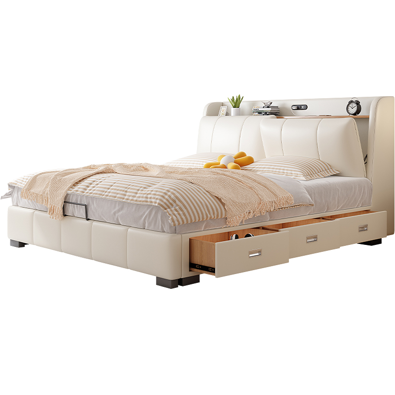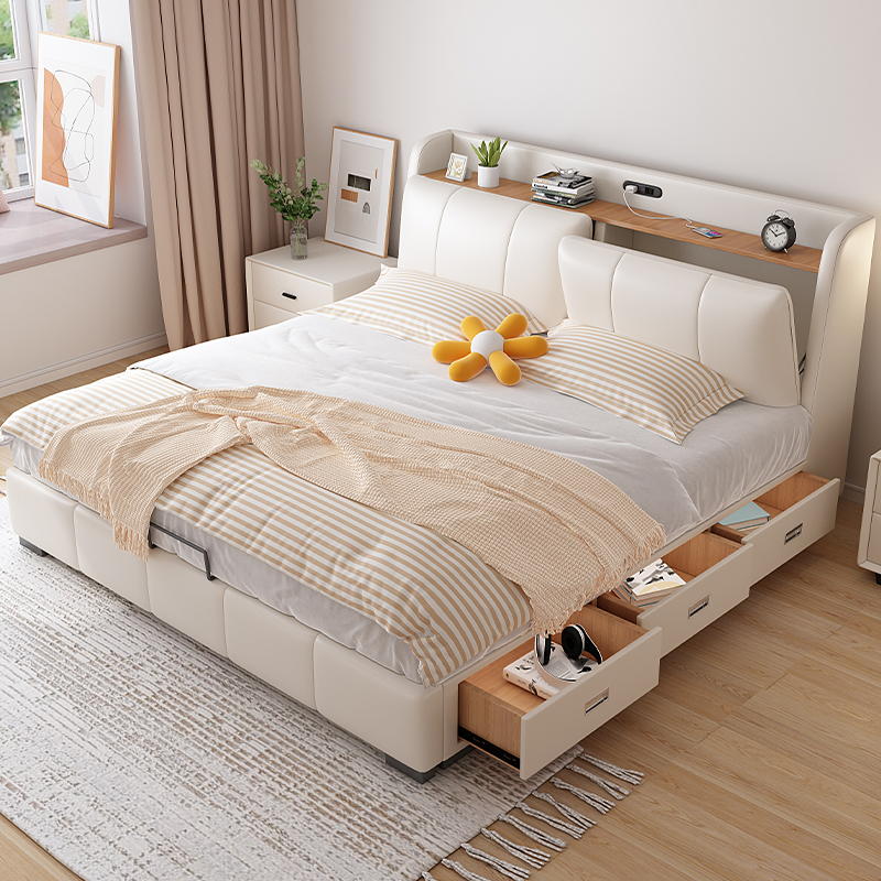 Real Leather Bed Modern Minimalist Master Bedroom Large Bed Double Man Bed Multifunction Storage Soft Foreskin Art Bed Solid Wood Bed Wedding Bed-Taobao