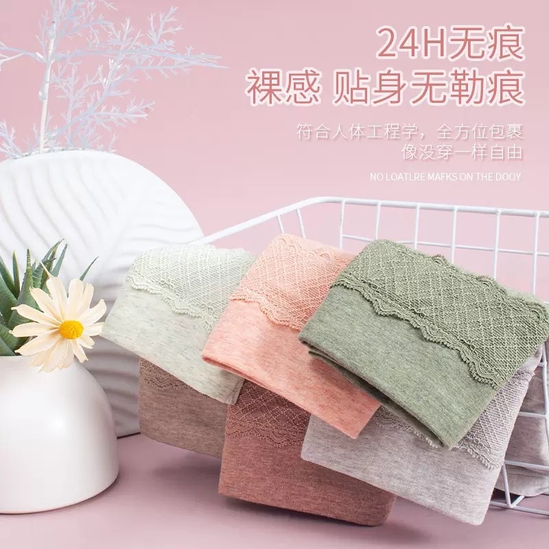 Lady Langsha High waist underpants lady pure cotton antibacterial trace lace 100 % cotton girl triangle shorts