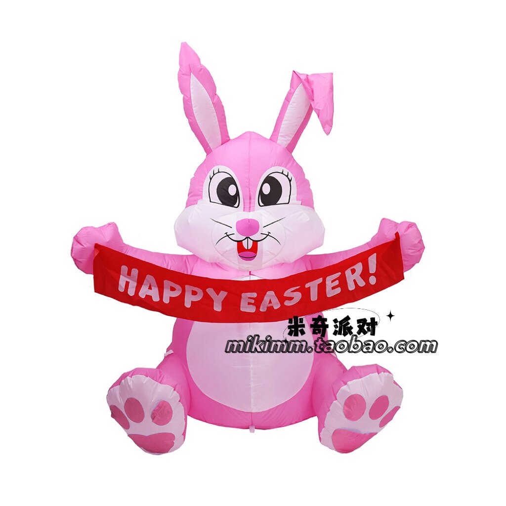 Cross-border Inflatable Easter Bunny 1 5m Inflatable Pink Cute Rabbit LED Luminous Inflatable Model Garden Decoration