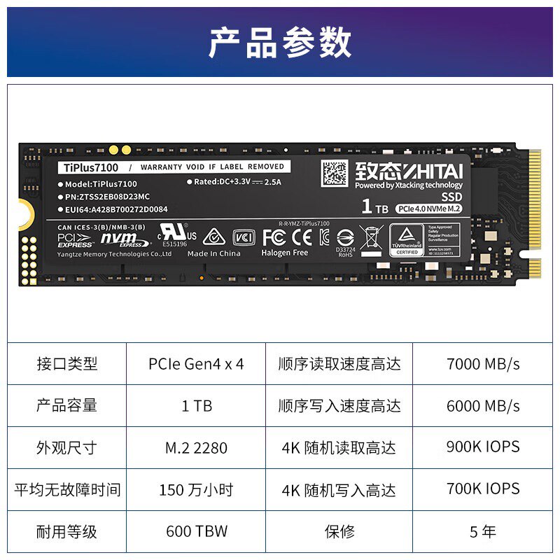 Gomorphism TiPlus5000 7100 PC005 256G1T2T Yangtze River Storage M2pcie Solid State Hard Disk 512G-Taobao
