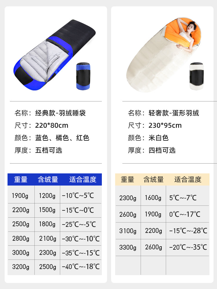 (-5°C~5°C) Down cotton type*2350g (-10°C~0°C) Down cotton type*2600g (-10°C~5°C) Down type 1900g Orange (-10