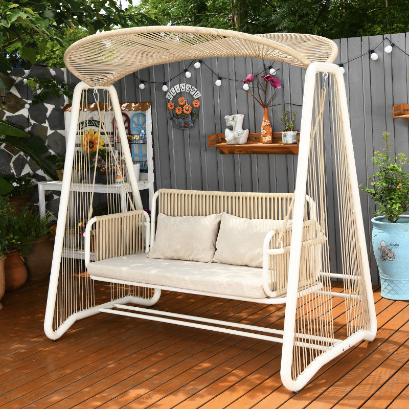 Molan pull rope double swing rocking chair (beige) Moran pull rope double swing rocking chair (light blue) Pebella rope double swing rocking chair (beige) main picture Benela rope double autumn and swing