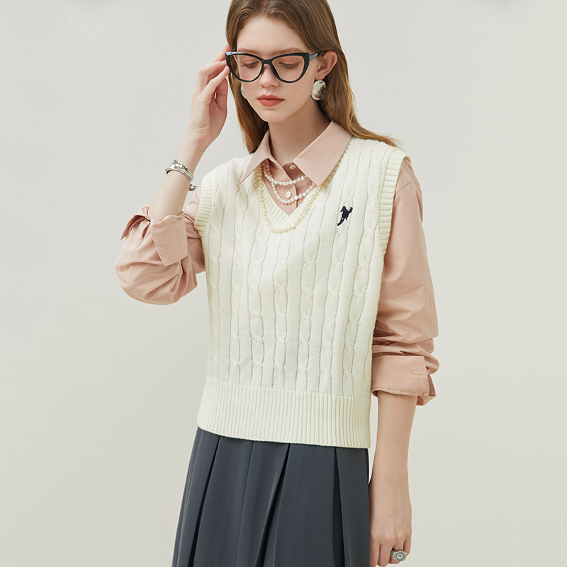 Van th Blue En 23FS11228 Academy Wind knit Machia women's fall V collar shirt exterior matching laminated vest-Taobao