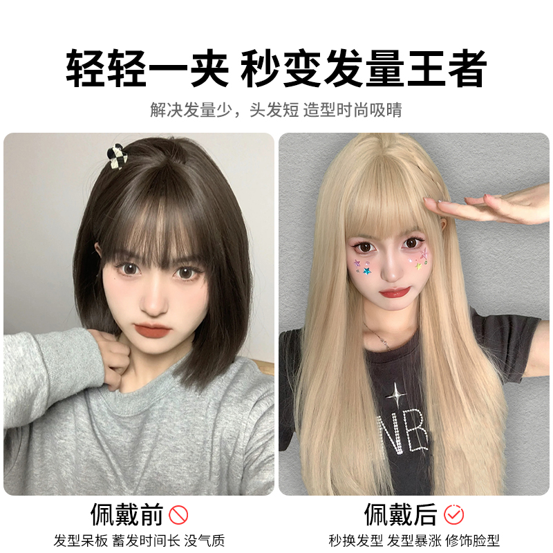 Golden wig woman long hair net red lolita sweet and cute wig cover natural whole top new JK headgear-Taobao