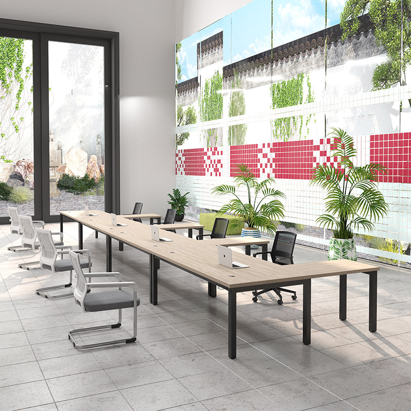 Double digit desk face to face L shaped corner boss table and chairs combination minimalist bench single manager table