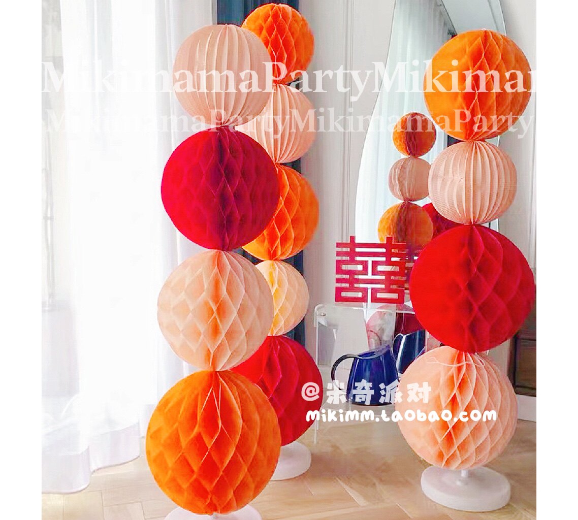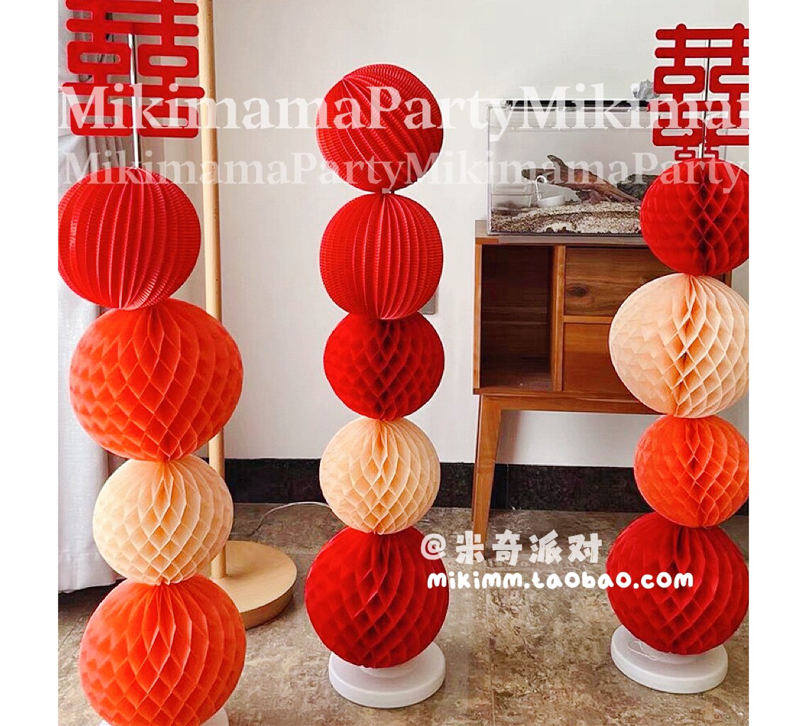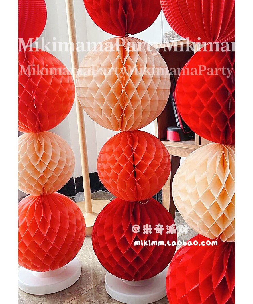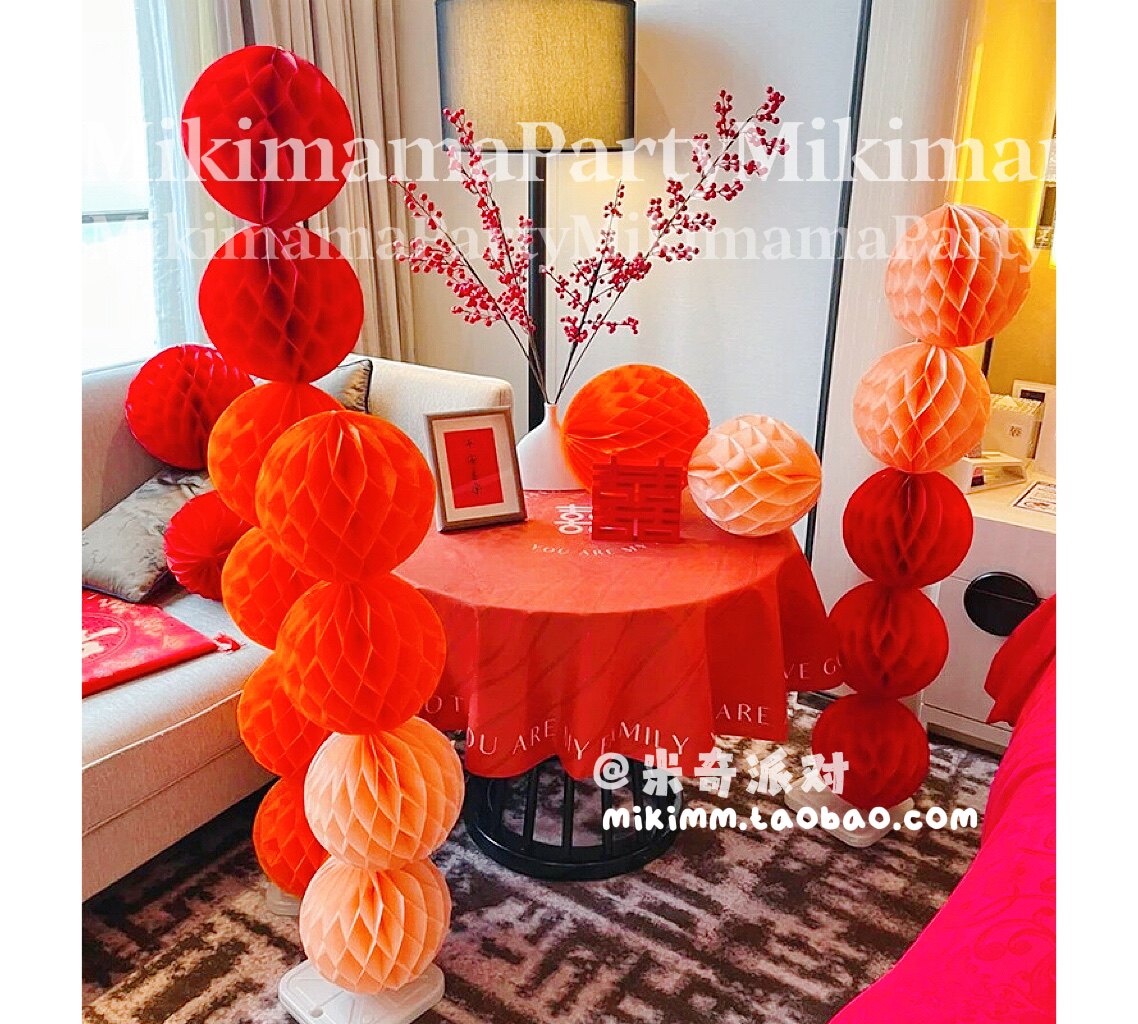 Mid-Autumn Festival National Day decoration honeycomb ball big red paper lantern shopping mall little red book wedding room decoration column paper flower ball