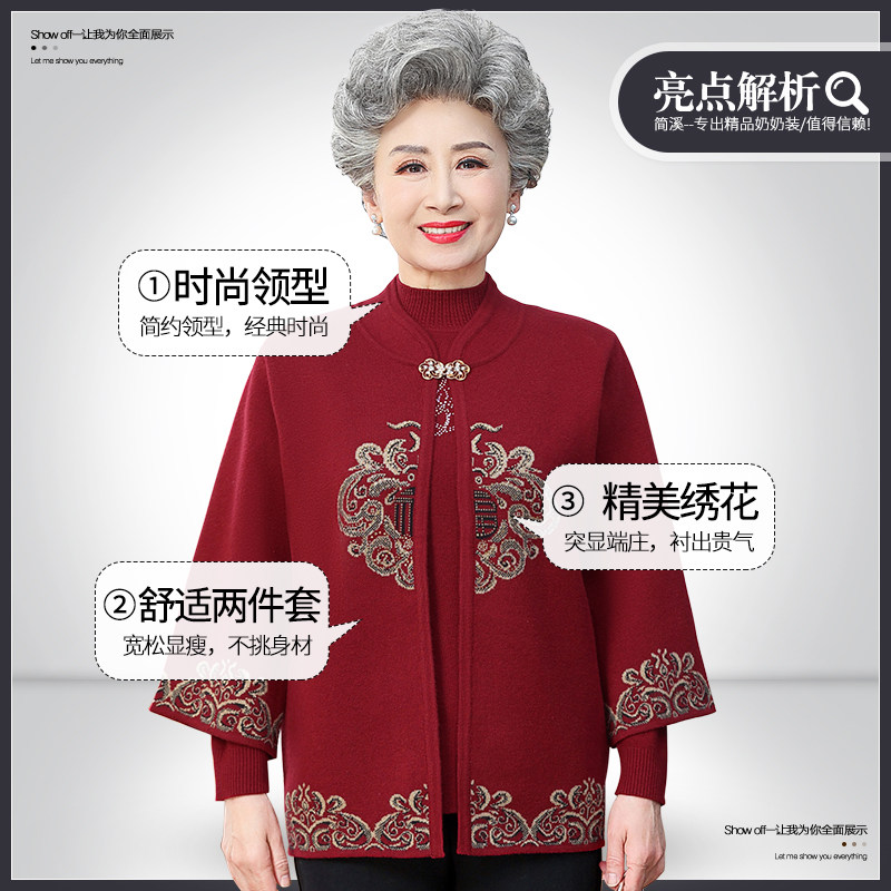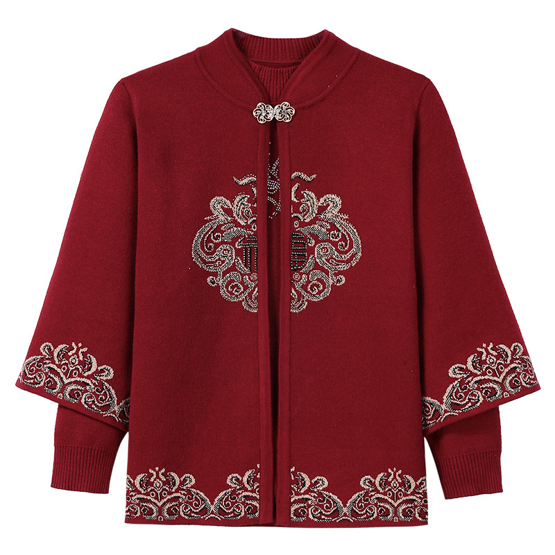 Elderly grandma Autumn Clothing Women Knit Winter Dress Plus Suede Coat Middle Aged Mother Red Ben Year Wedding Blouse-Taobao